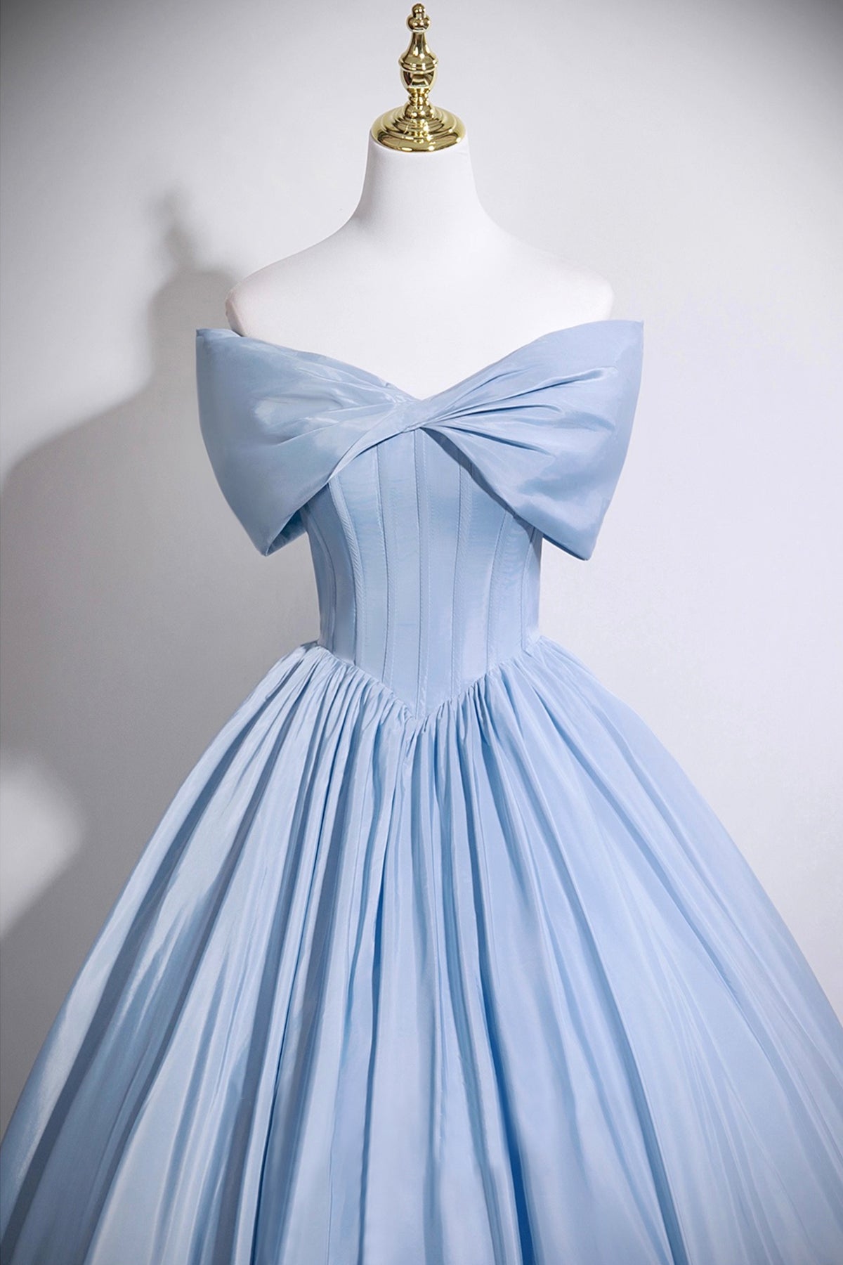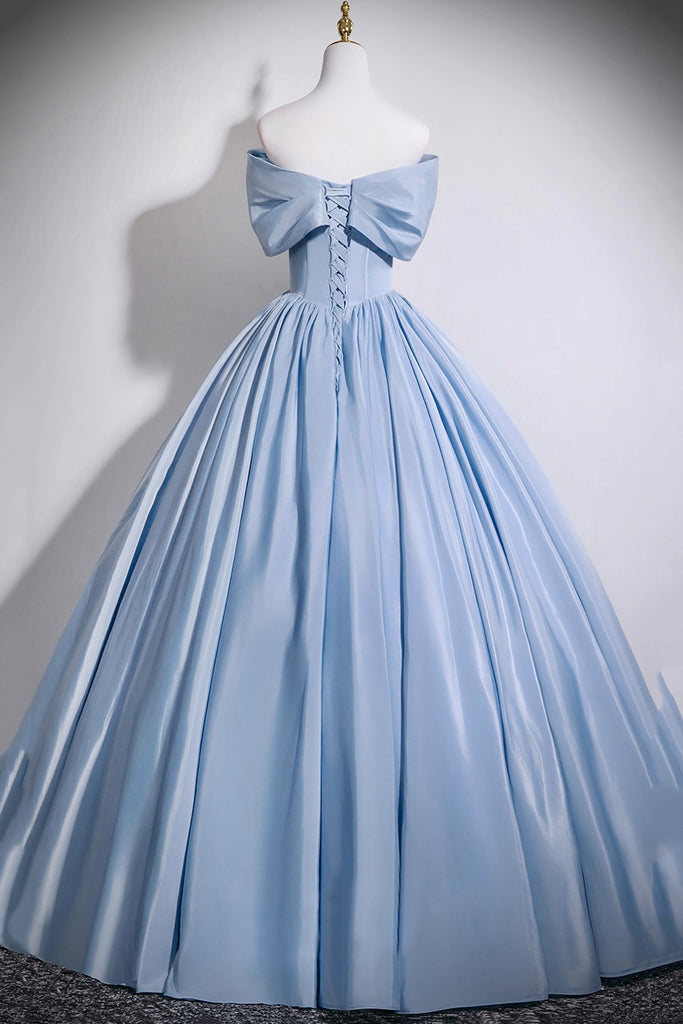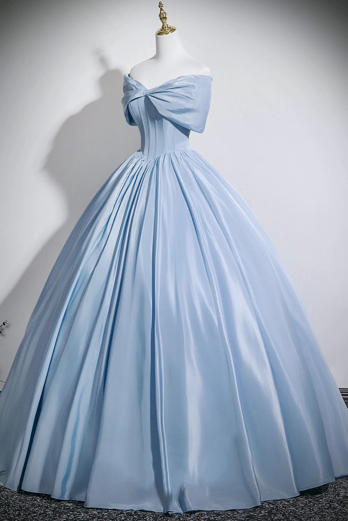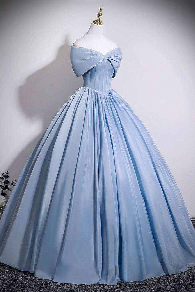 Blue Satin Long Prom Dress with Corset, Off the Shoulder A-Line Evening Party Dress