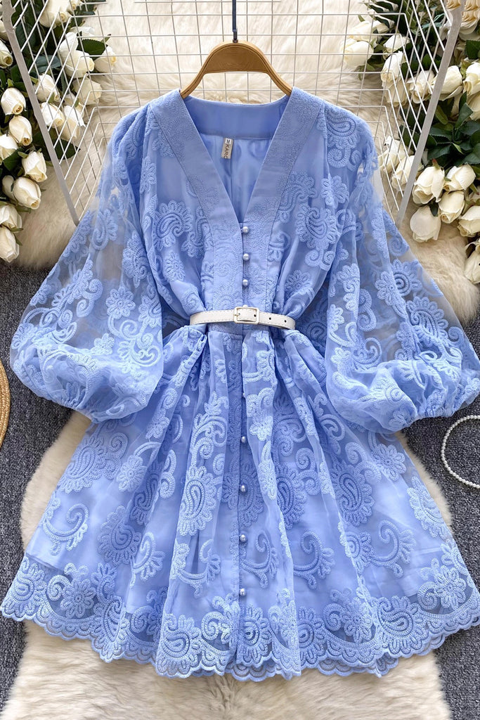 Elegant V-Neck Lace Dress, A-Line Fashion Dress