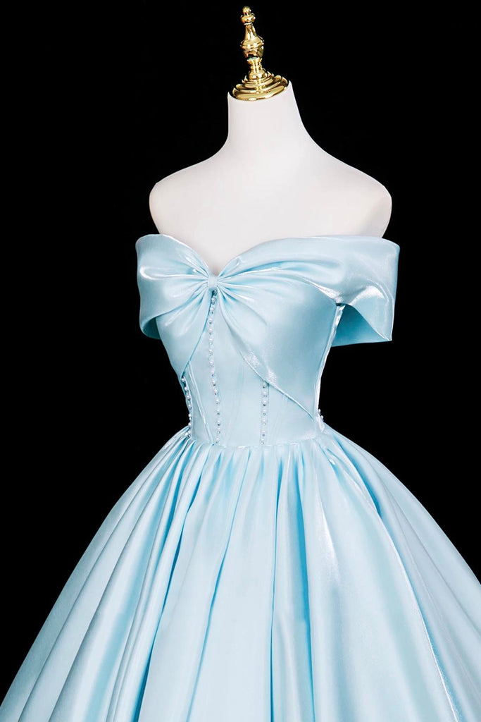 Blue Satin Long Prom Dress, Blue A-Line Backless Evening Formal Dress