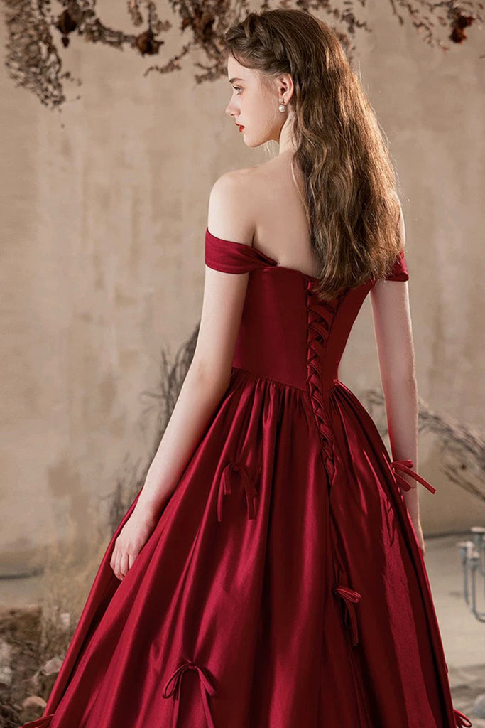 Burgundy Satin Long Prom Dress, Beautiful A-Line Evening Party Dress