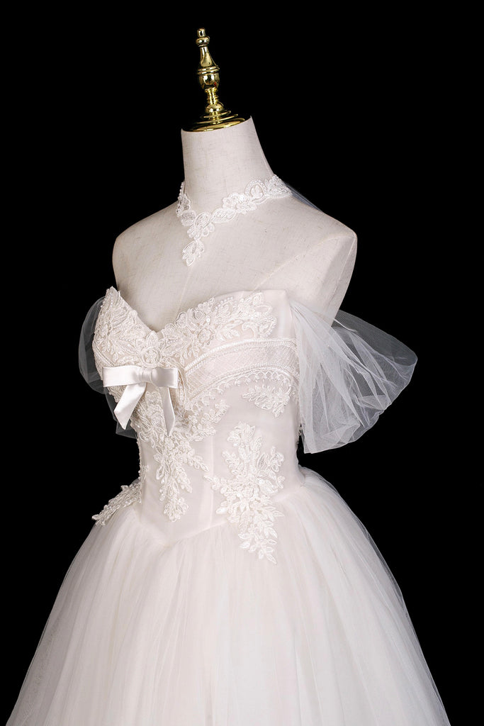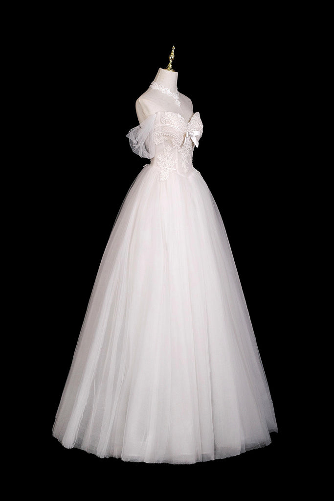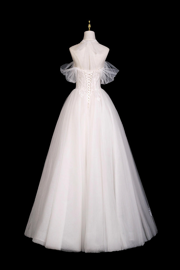 Beautiful Ivory Tulle Lace Floor Length Prom Dress, A-Line Sweetheart Neck Formal Dress